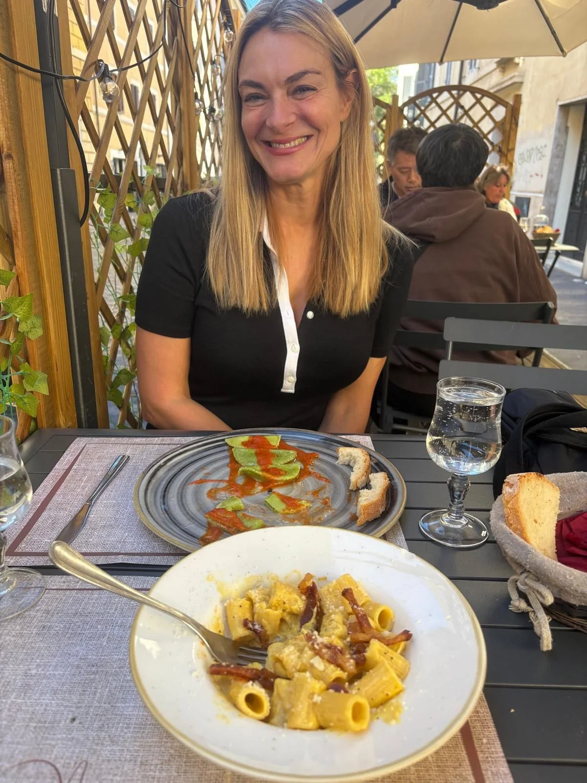 In Rome, we had packed days and full hearts — walking on the floor of the Colosseum on a glorious sunny afternoon on a private tour, to sharing dinner and laughter with my cousin John and his family, and then the following day wandering through the Vatican Museum, Sistine Chapel, and St. Peter’s Basilica. We walked eight miles that day, and every step felt sacred. Lots of pasta was eaten, and every meal was delicious.
